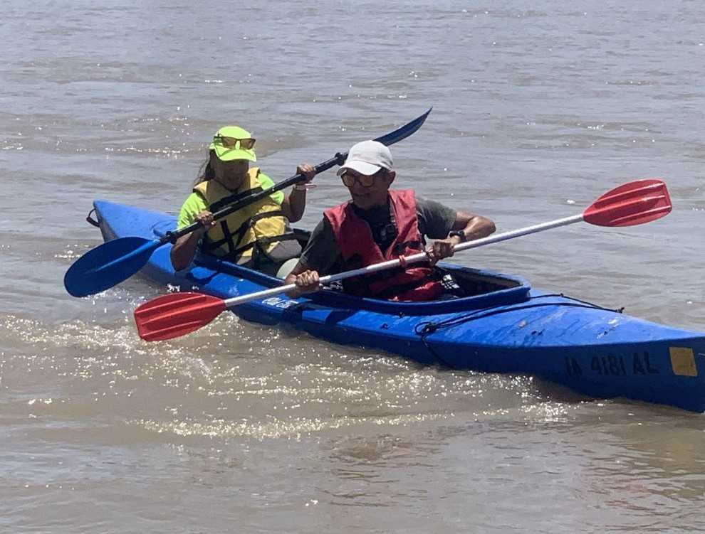 Once student has mastered the fundamentals, they will join with an instructor to paddle upriver a short way, then down river around an island and back to the riverbank.